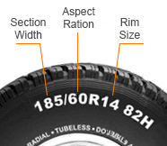 The letter contained in the code indicates the type of tire*. 'R' in this case stands for radial tires. Alternatively, 'D' for bias tires could also be listed here.